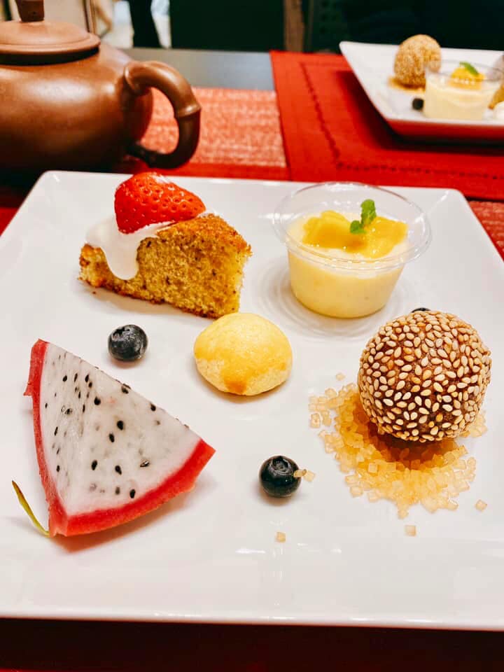◇8千円からのコース料理のデザート盛り合わせです!ゴマ団子もケーキもクッキーも芒果プリンも全て手作りで甘さを控えた優しい味わいになってます。