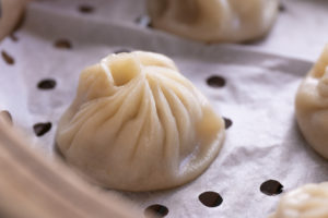 葱生姜、豚肉、椎茸、人参、玉葱、キャベツ、春雨など8種類の食材を炒め、鶏がらスープで少し煮込み野菜の旨味をスープに移す事でとっても美味しい餡に。